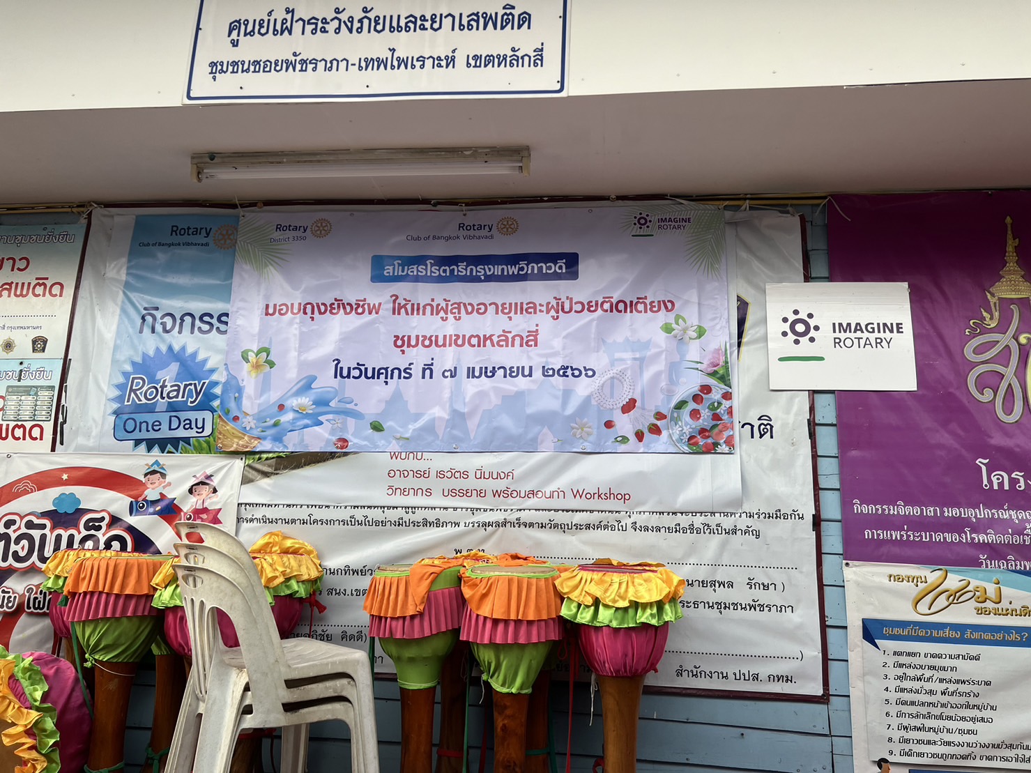 สโมสรโรตารีกรุงเทพวิภาวดี มอบถุงยังชีพ ให้แก่ผู้สูงอายุและผู้ป่วยติดเตียง ชุมชนเขตหลักสี่