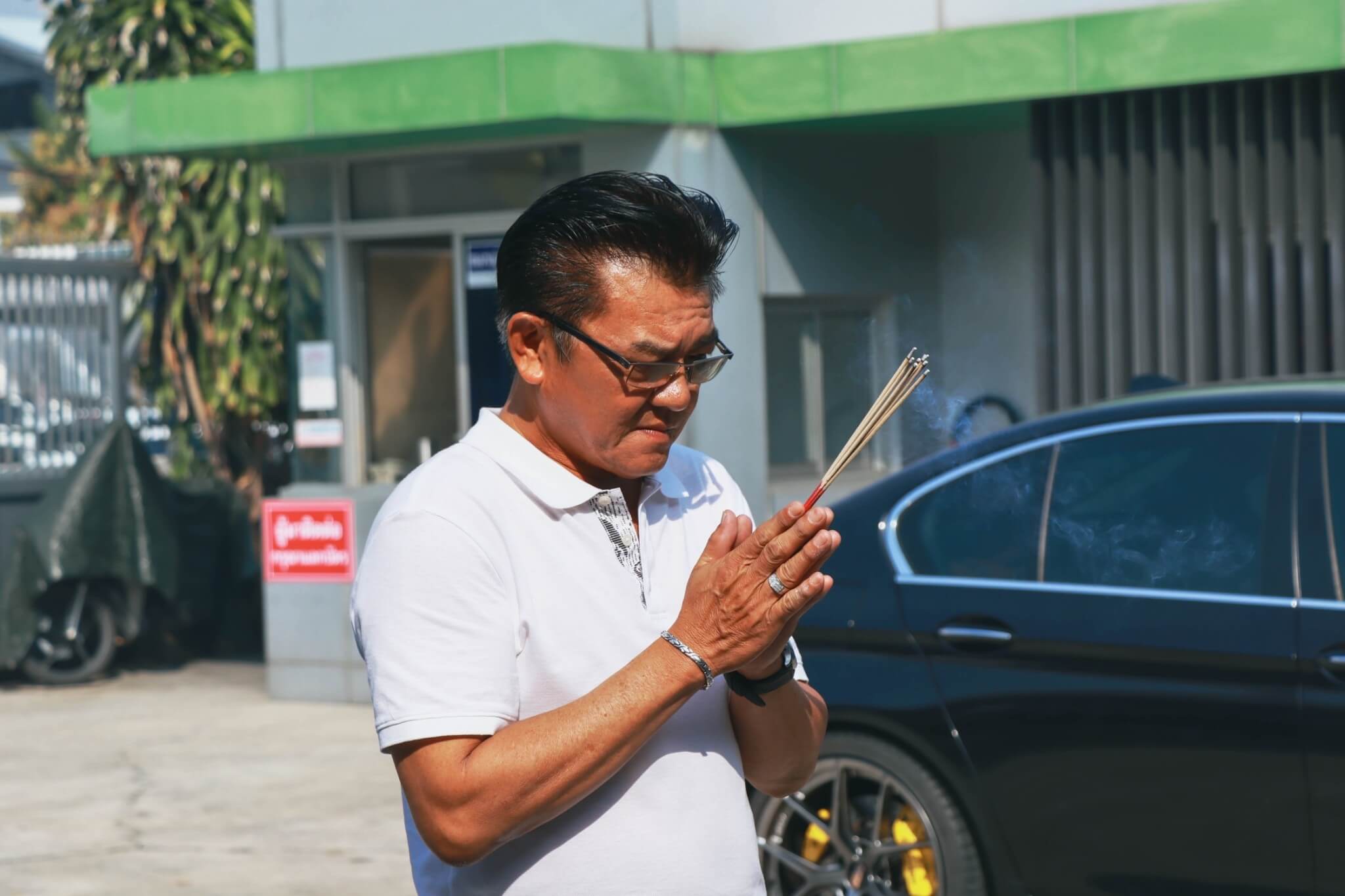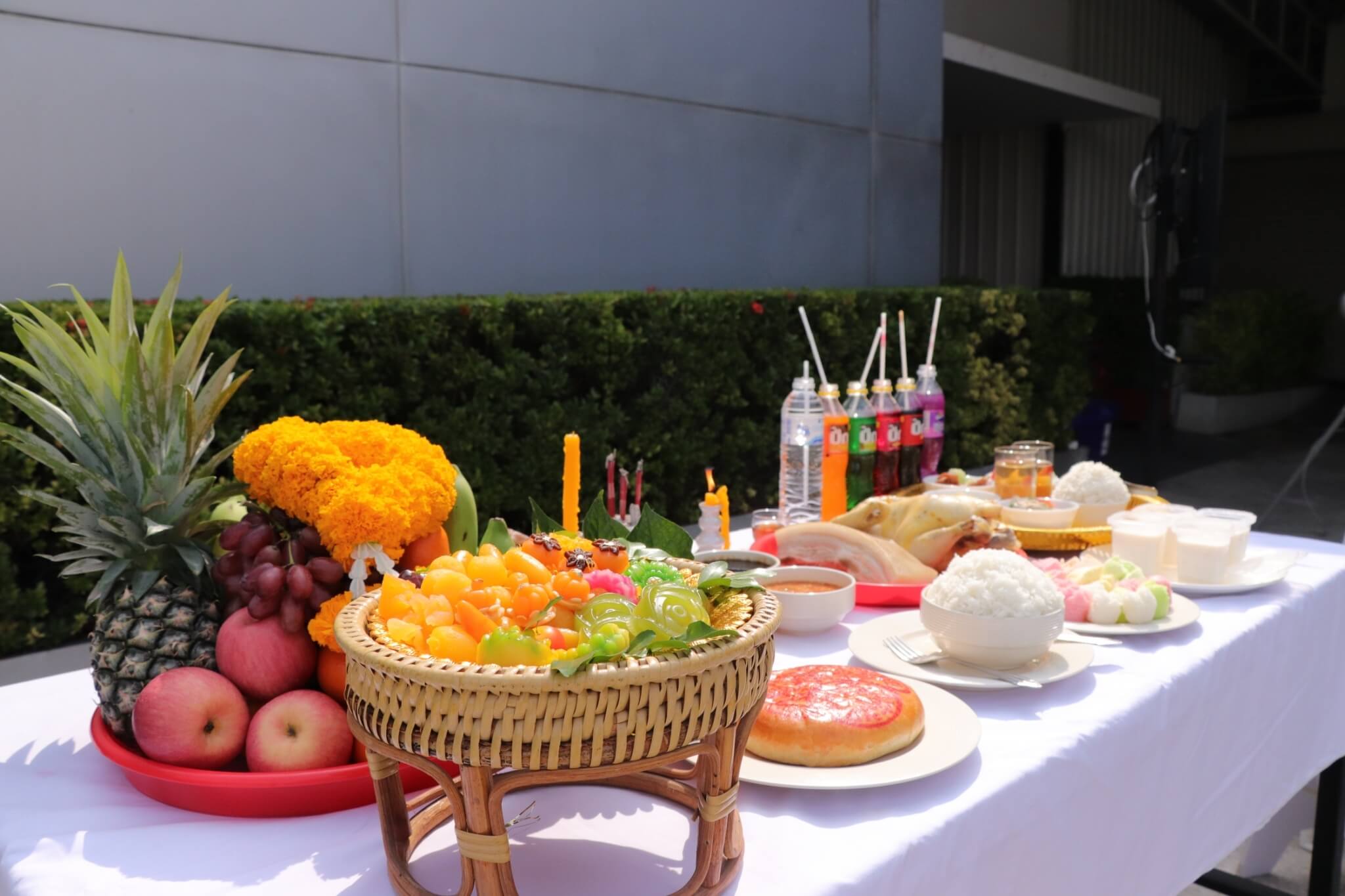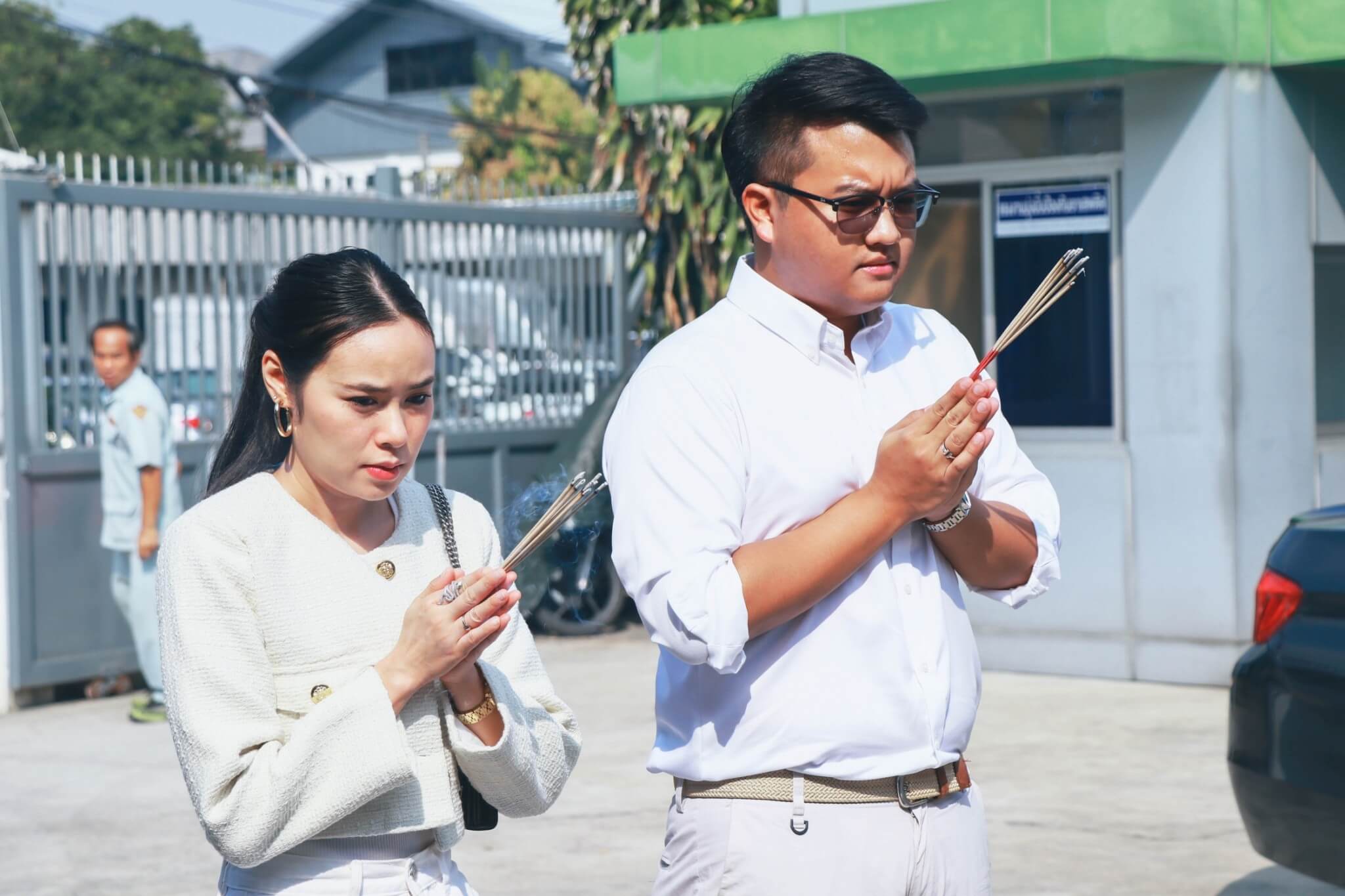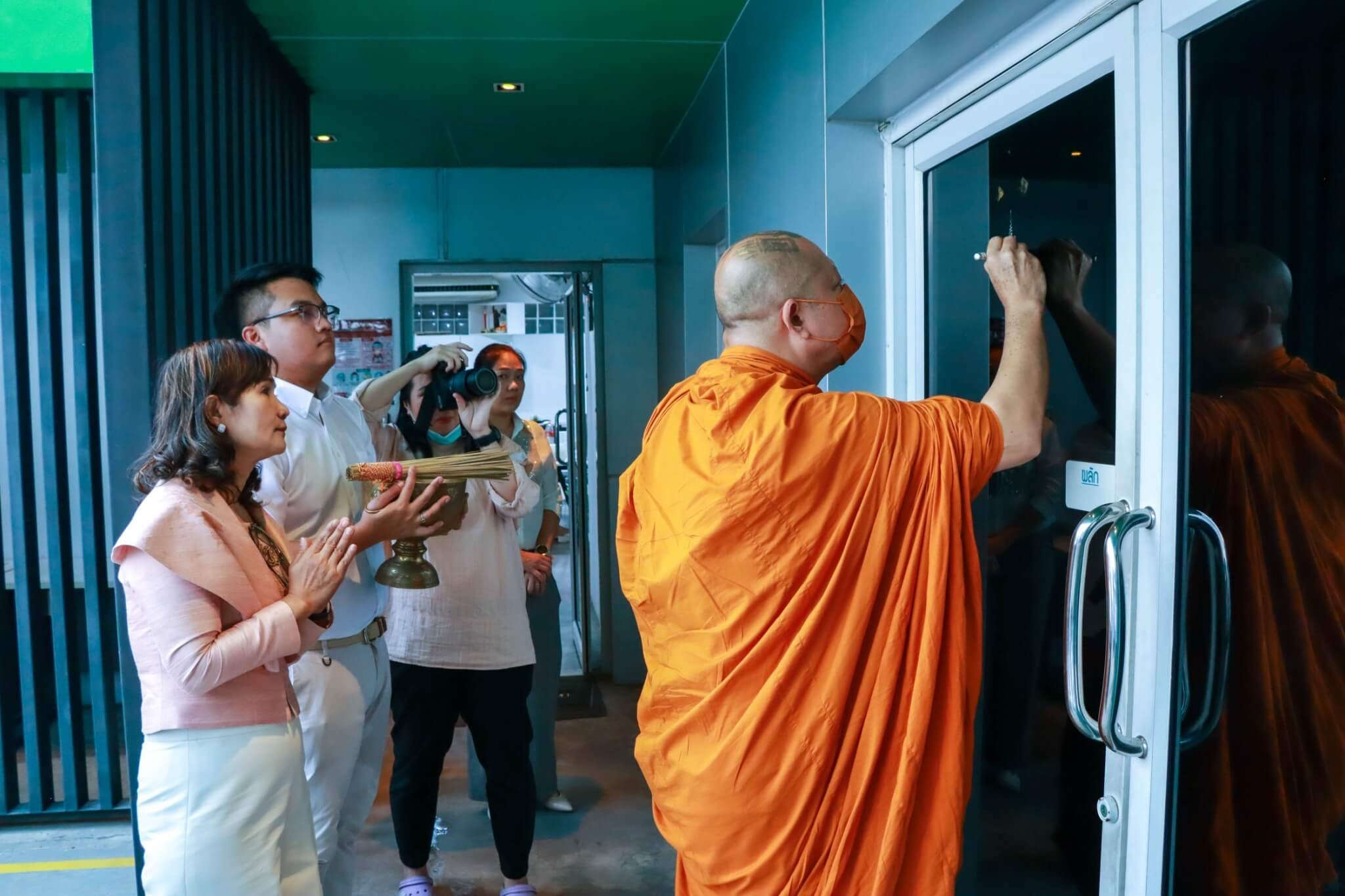 and pour holy water to bring good fortune to the employees and the company