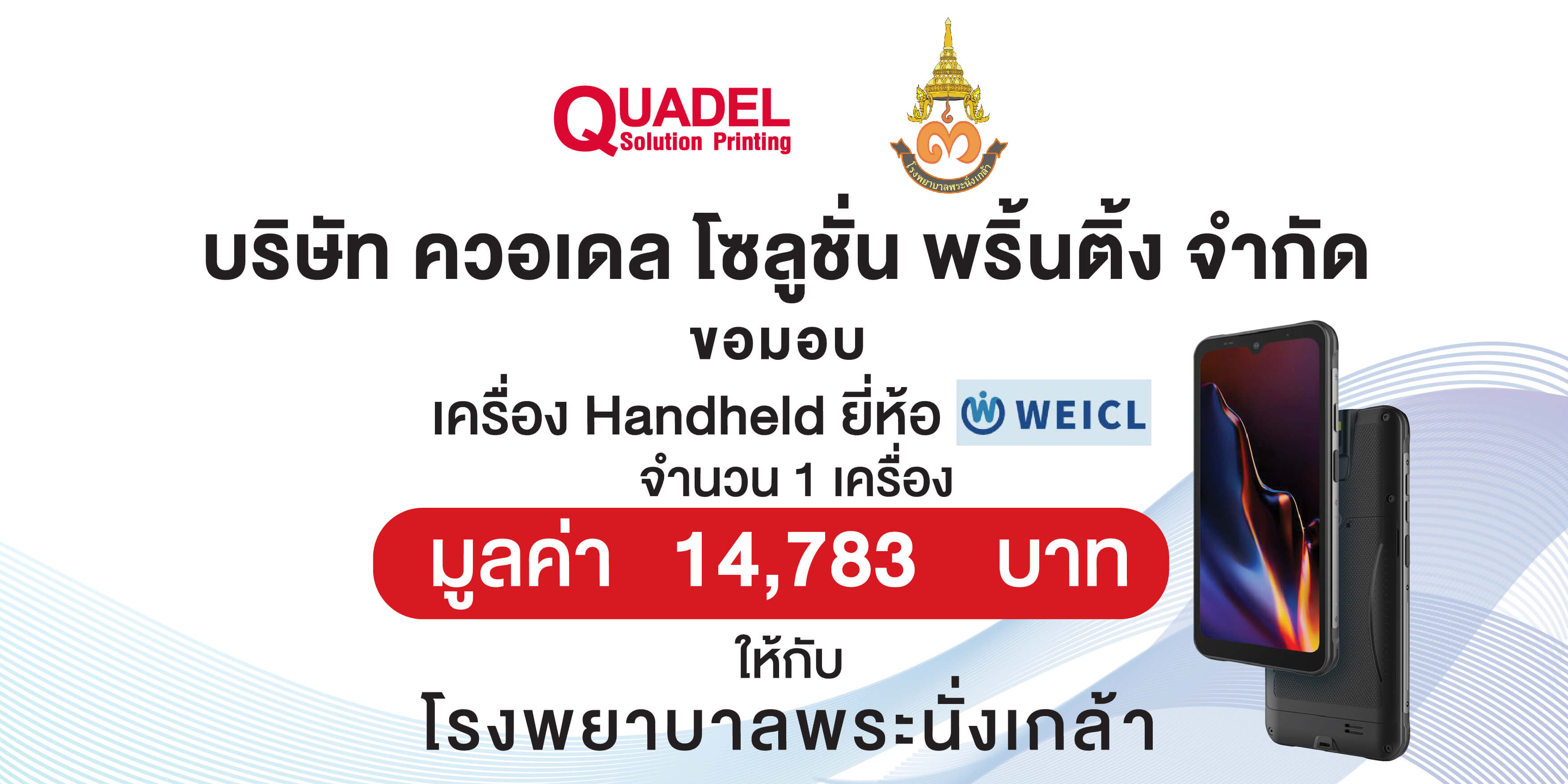 มอบเครื่อง Handheld Weicl รุ่นT60 จำนวน 1 เครื่อง ให้กับ โรงพยาบาลพระนั่งเกล้า
