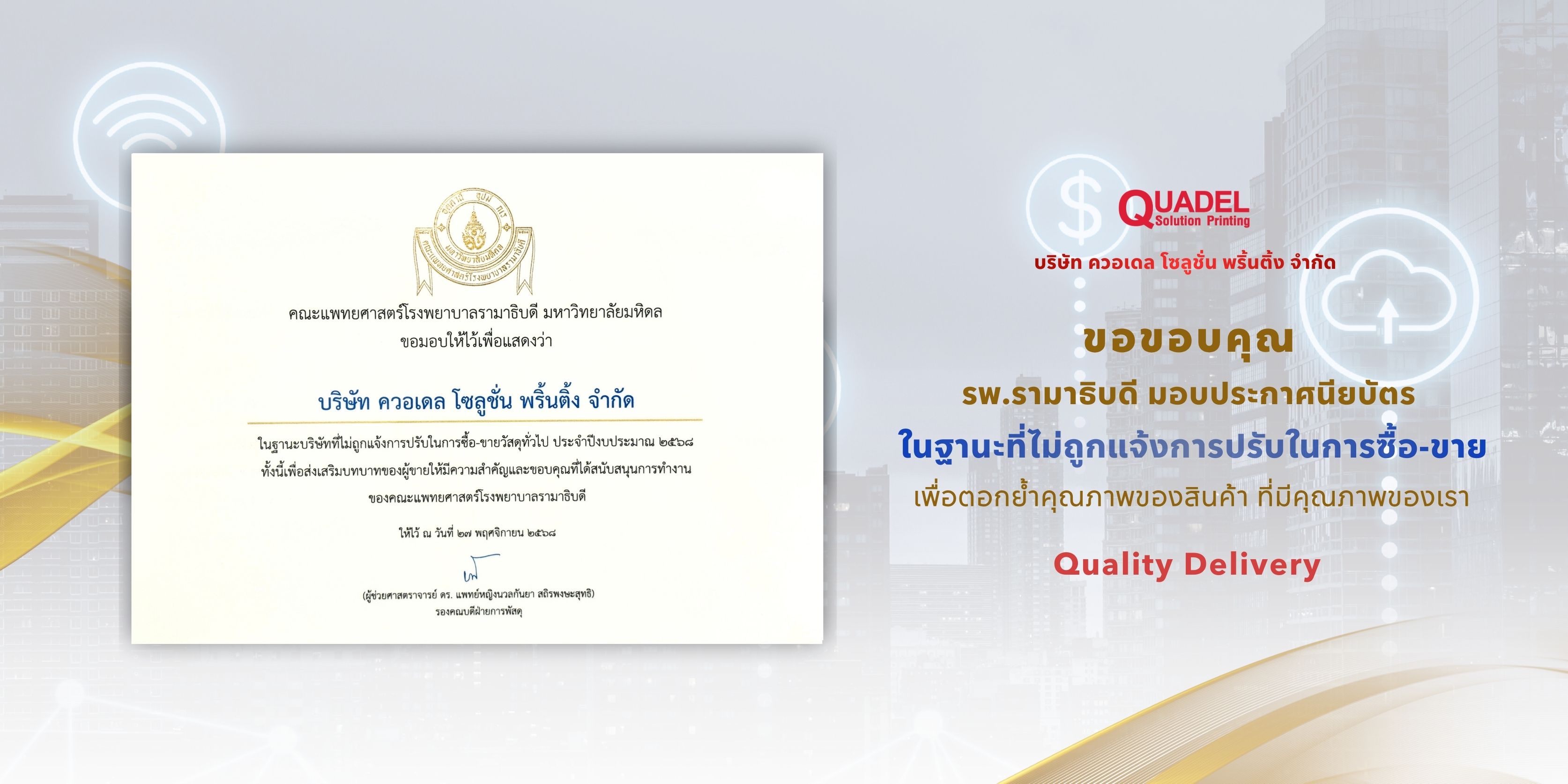 รับมอบประกาศนียบัตรรับรองคุณภาพ จากโรงพยาบาลรามาธิบดี
