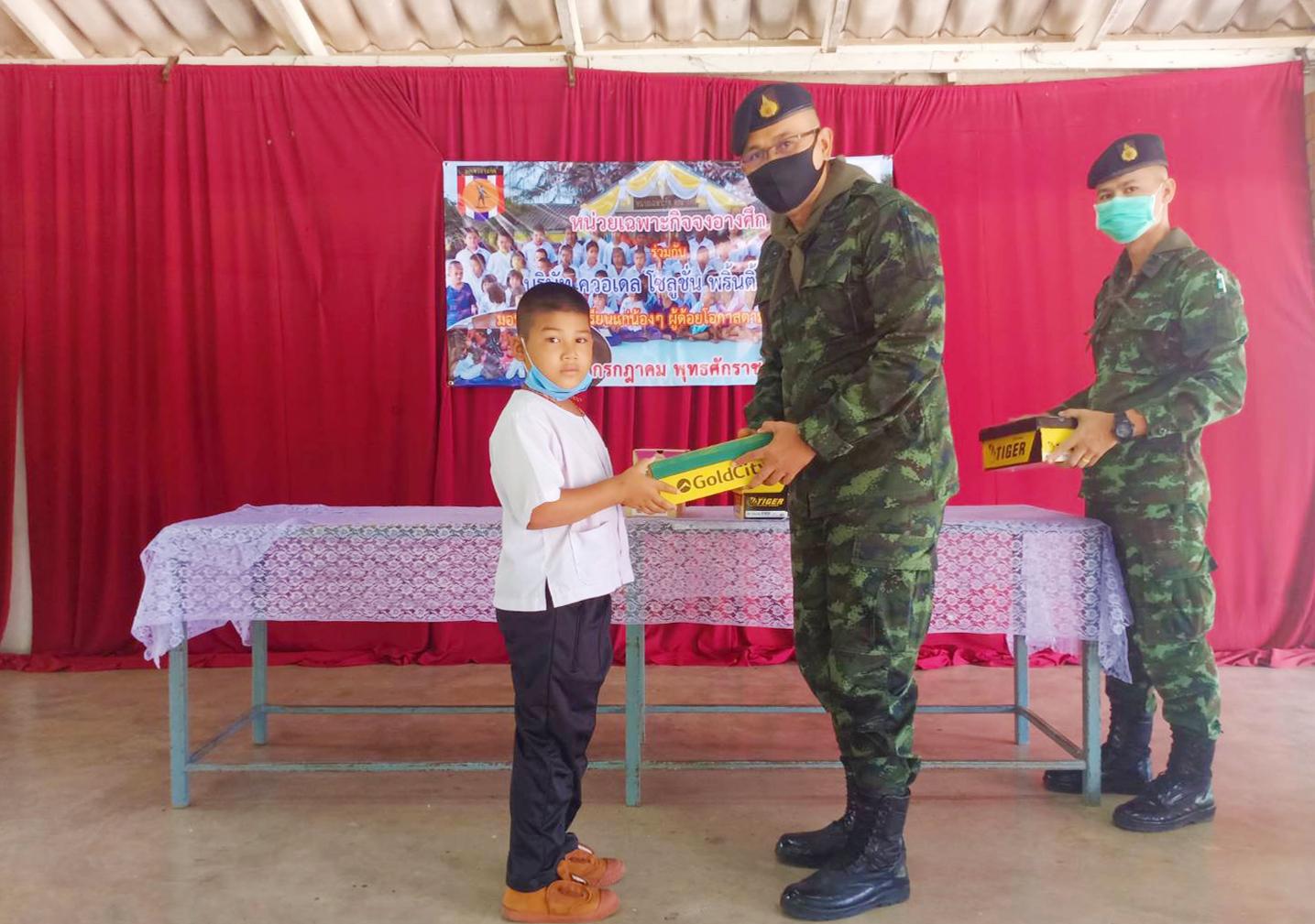 ได้เข้ามอบรองเท้า ให้กับนักเรียนผู้ด้อยโอกาสตามแนวชายแดน จ.ประจวบคีรีขันธ์