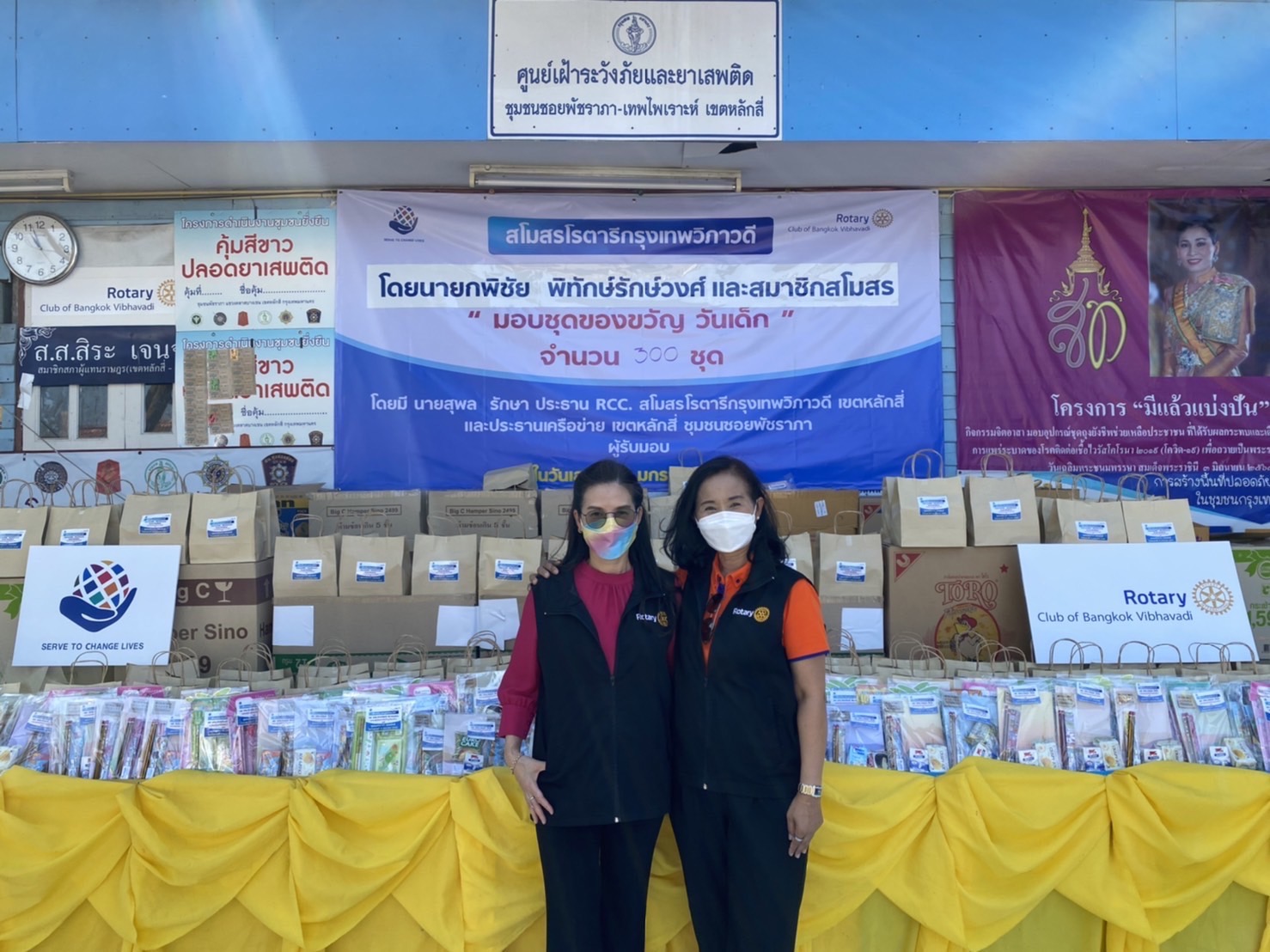 เพื่อนำไปแจกเด็กๆ ในเขต หลักสี่ โดยมีผู้นำชุมชน คุณสุพล รักษา เป็นผู้รับมอบ
