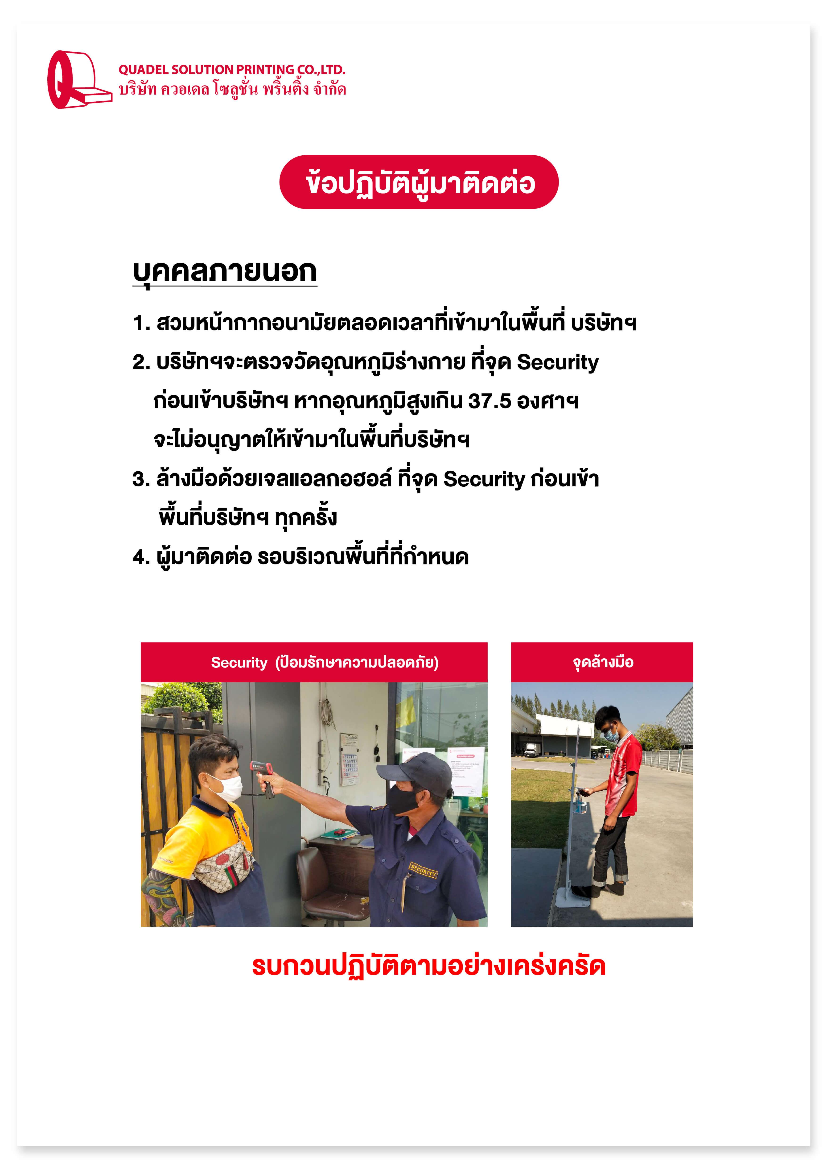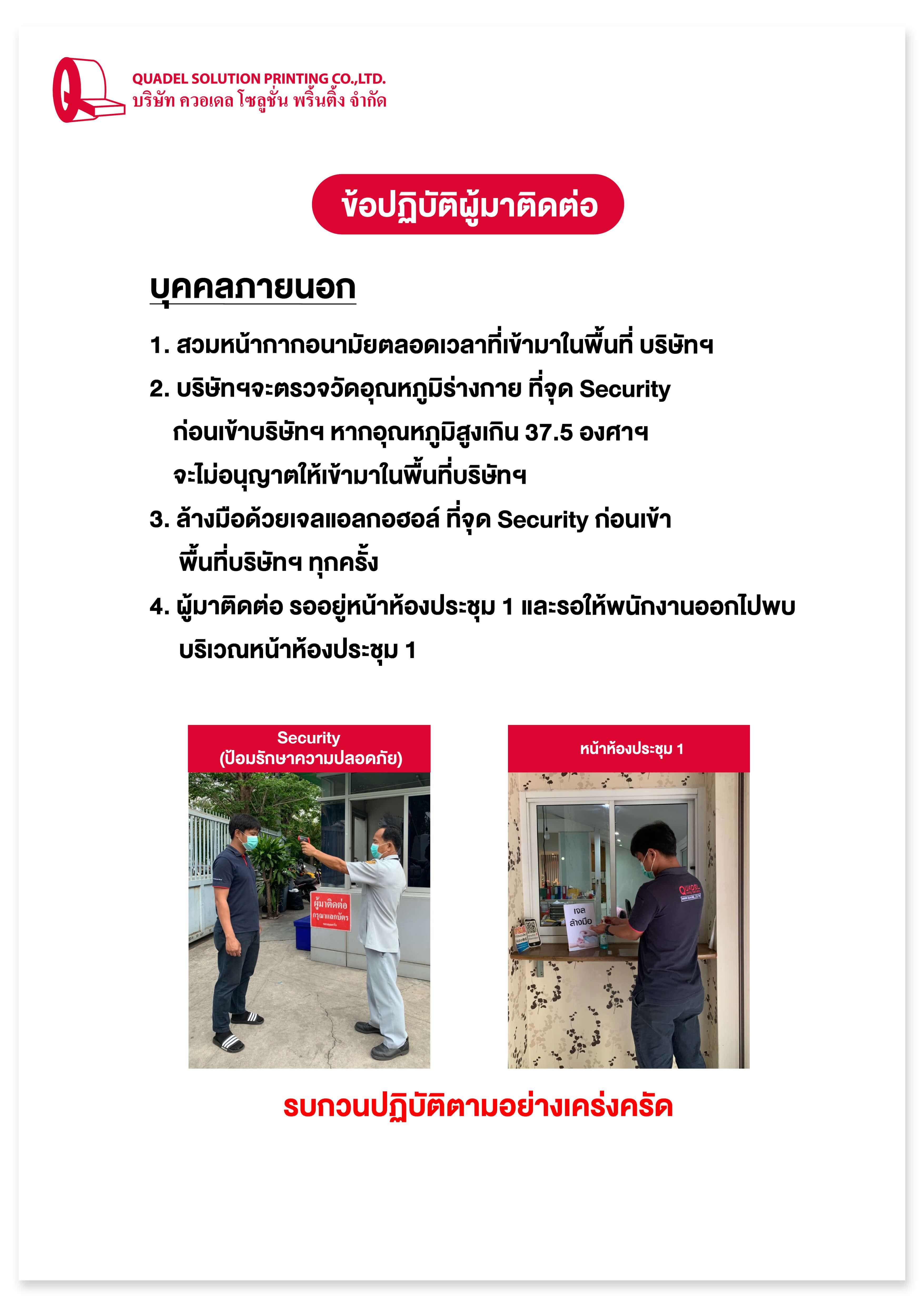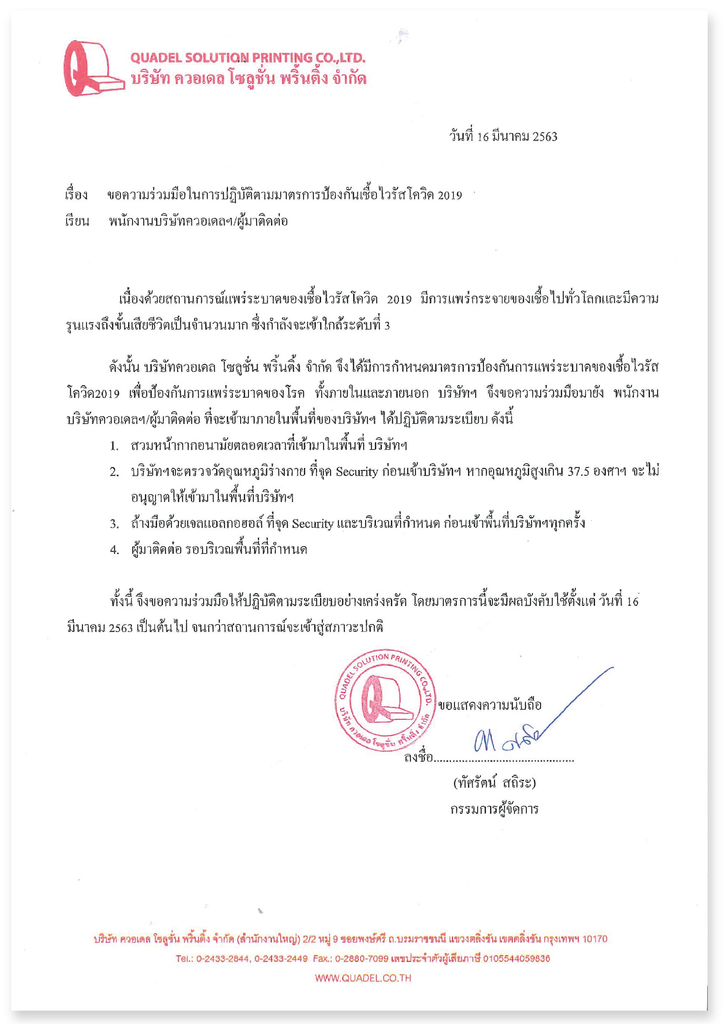 บริษัท ควอเดล โซลูชั่น พริ้นติ้ง จำกัด จึงได้มีการกำหนดมาตรการป้องกันการแพร่ระบาด