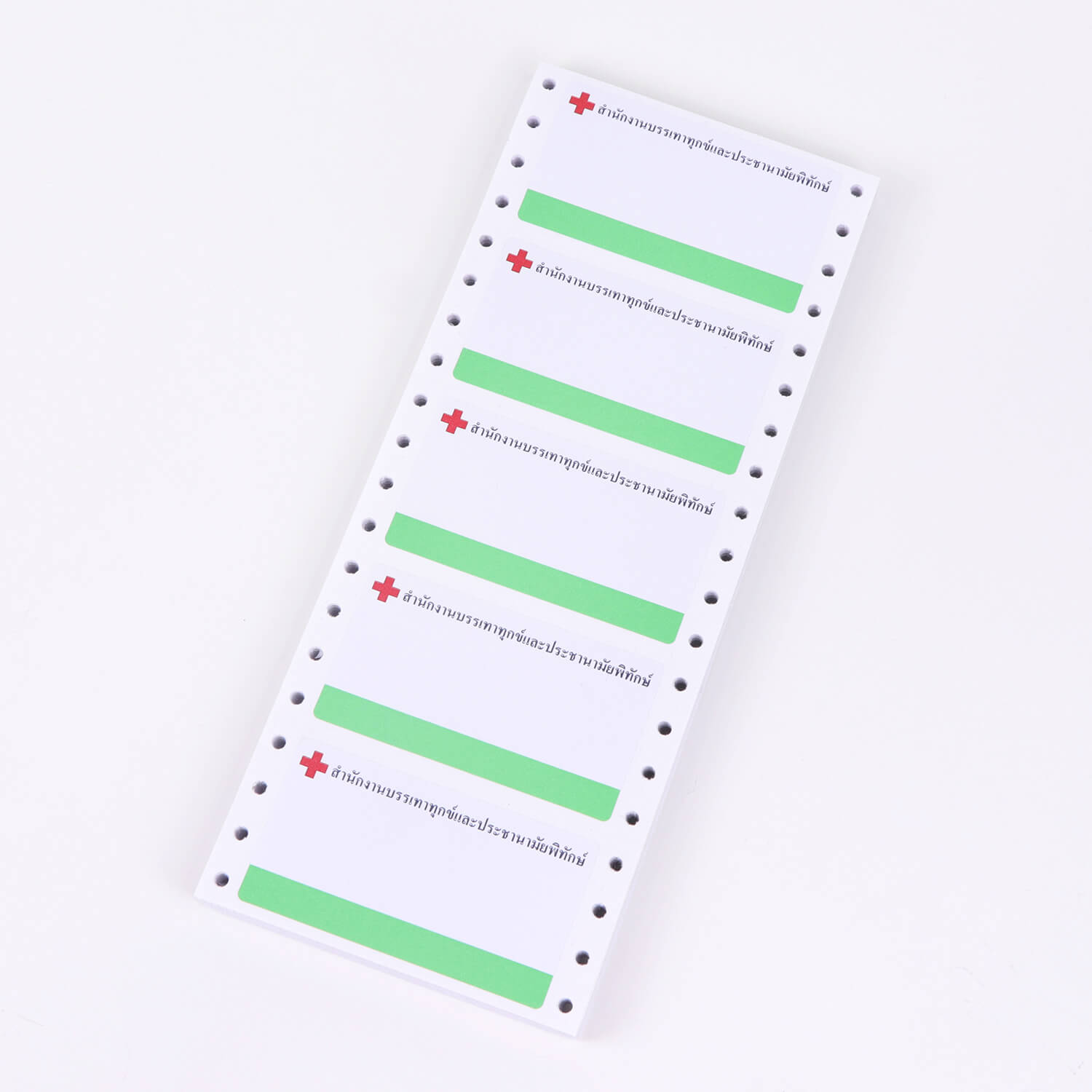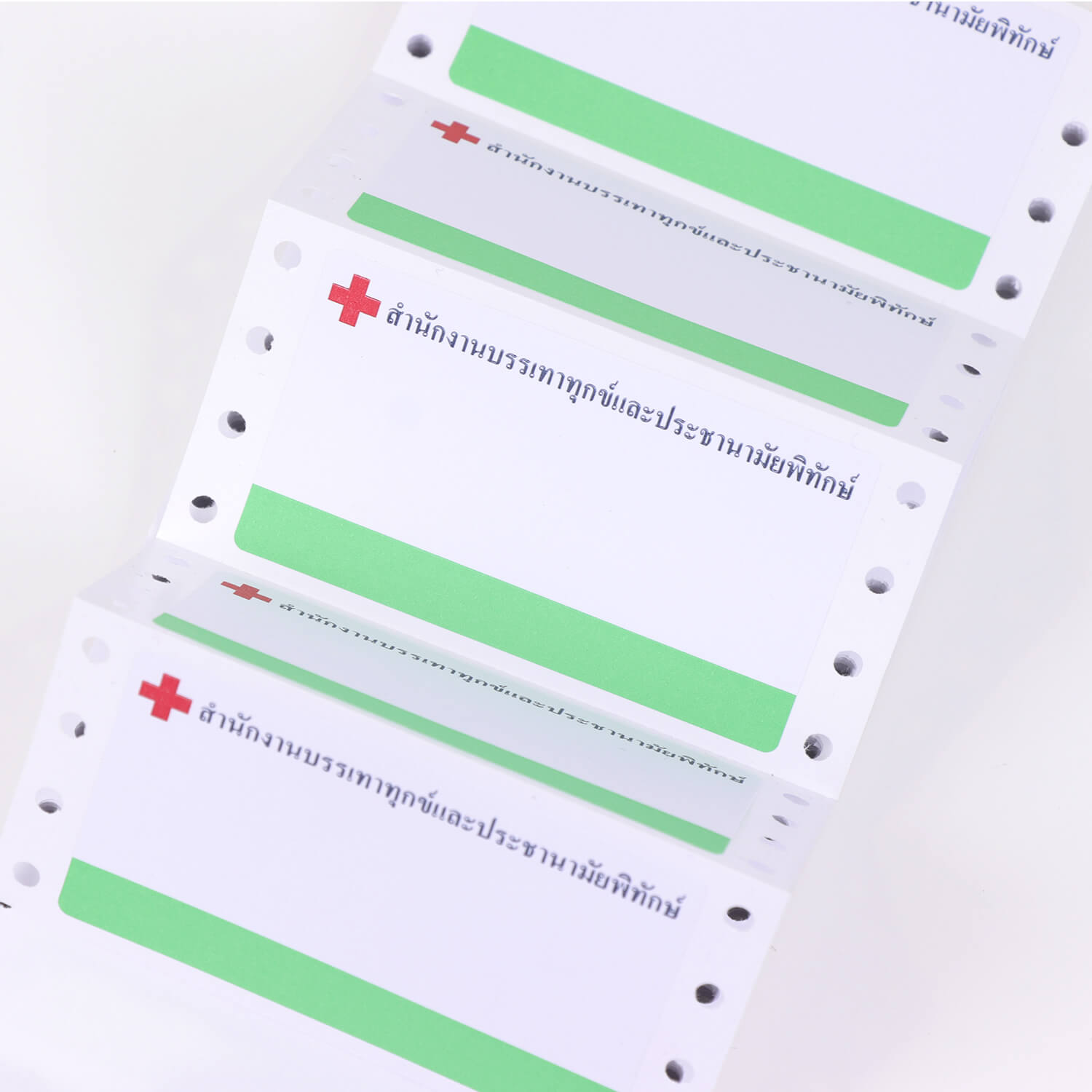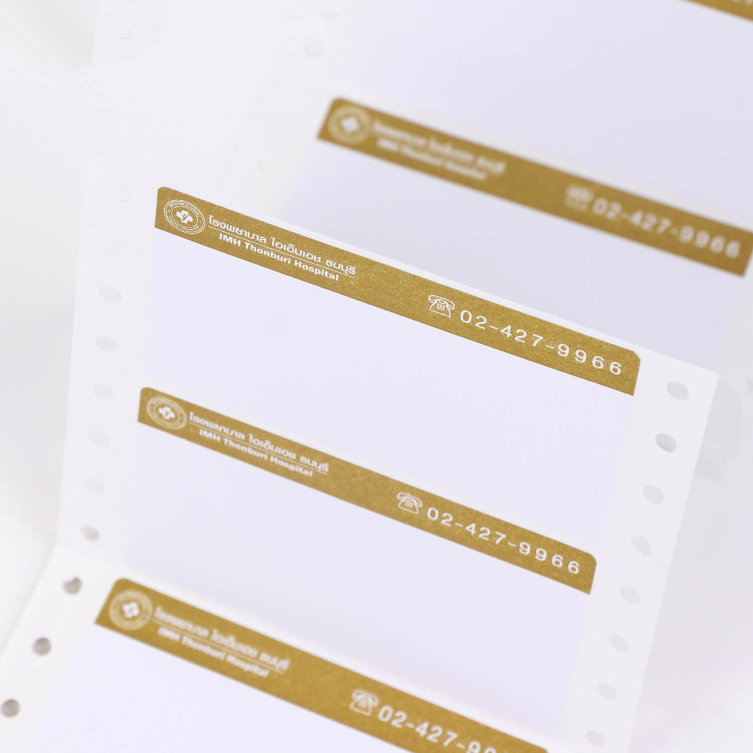 สติ๊กเกอร์เจาะรูหนามเตย สำหรับพิมพ์บนเครื่อง Dot Matrix เนื้อกระดาษออกแบบมาให้รับหมึกโดยเฉพาะ ออกแบบและไดคัทตามความต้องการของลูกค้า